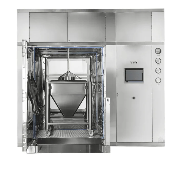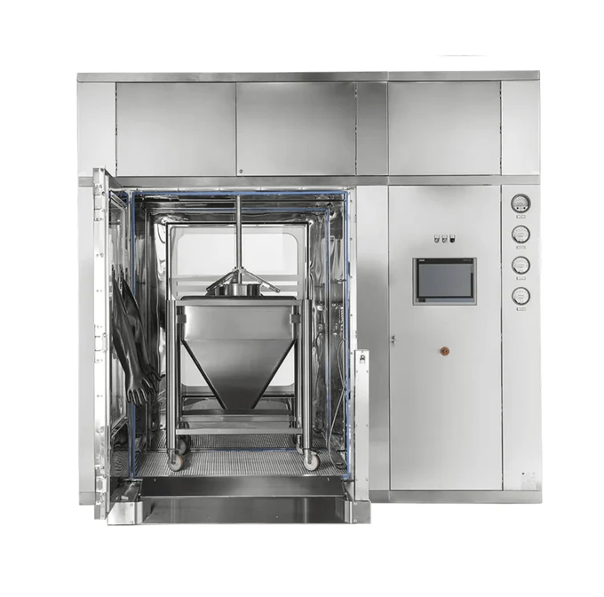 Оборудование для мойки и дезинфекции, соответствующее стандартам cGMP, с системой изоляции Машины UCW ONCO специально разработаны для химической и/или термической дезинфекции и сушки поверхностей, загрязненных противораковыми препаратами или высокоэффективными активными фармацевтическими ингредиентами (АФИ). Эти установки оснащены системой изоляции.