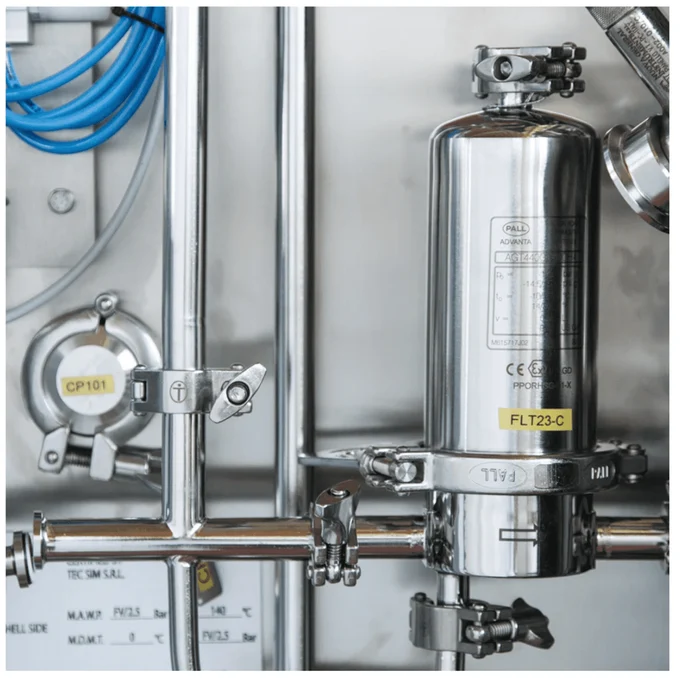 Процесс генерации пара происходит за счет теплообмена между водой и нагревательным элементом. Возможны два типа систем нагрева: электрическая или косвенная (промышленная). При использовании электрической системы нагревательные элементы непосредственно погружены в воду (эта система также называется «прямой»). Косвенная система, с другой стороны, использует промышленный пар, который проходит через змеевик, постоянно погруженный в воду. Обе системы могут быть оснащены картриджным фильтром с порами 0,2 мкм и устройством для отделения воды, чтобы обеспечить чистоту и насыщенность (отсутствие конденсата) генерируемого чистого пара.