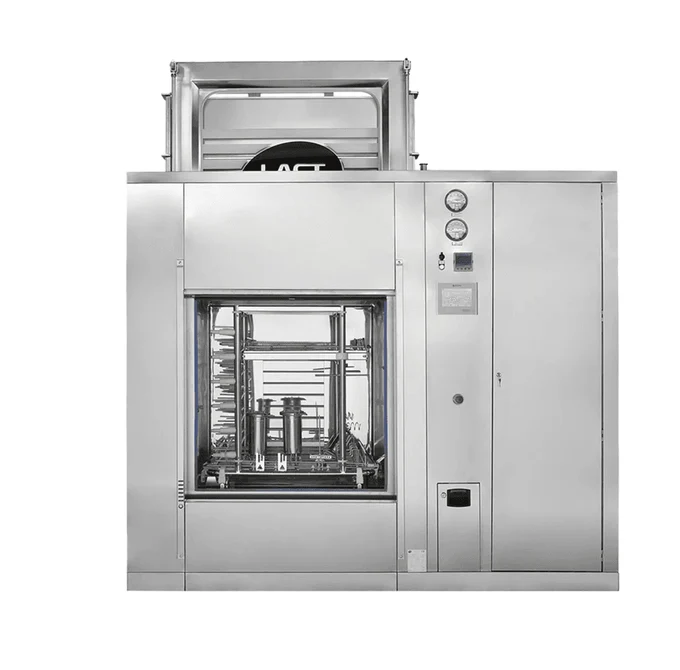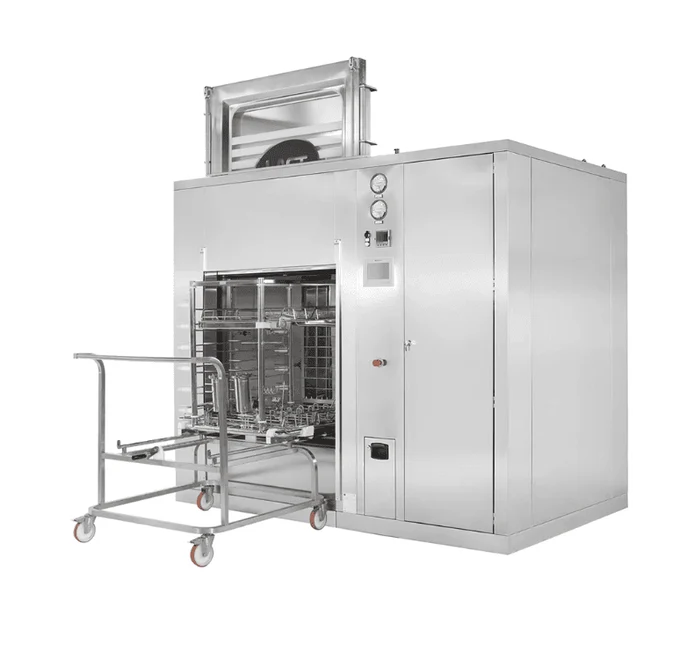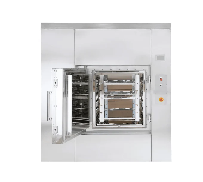Терминальные стерилизаторы cGMP. Эти стерилизаторы оснащены встроенной системой вентиляции, которая смешивает чистый пар и воздух, создавая идеальную среду для стерилизации. Этот метод рекомендуется для сложных пластиковых или стеклянных контейнеров, таких как предварительно заполненные шприцы или флаконы, в которых могут образовываться конденсаты, ухудшающие качество готового продукта. Система гарантирует оптимальное распределение тепла на протяжении всего процесса стерилизации с отклонением температуры менее ±1°C. Кроме того, эти автоклавы обеспечивают превосходный процесс сушки благодаря системе вентиляции, которая подготавливает разгруженный продукт к маркировке и упаковке.
