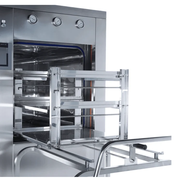 Эти стерилизаторы оснащены встроенной системой вентиляции, которая смешивает чистый пар и воздух, становясь стерилизующей средой. Этот метод обработки рекомендуется для сложных пластиковых или стеклянных контейнеров, таких как предварительно заполненные шприцы или флаконы, в которых может образовываться конденсат, создающий проблемы для готового продукта. Система обеспечивает оптимальное распределение тепла на протяжении всего этапа стерилизации (отклонение температуры менее ± 1°C). Эти автоклавы также отличаются улучшенным процессом сушки благодаря системе вентиляции, которая подготавливает незагруженный продукт к маркировке и упаковке.