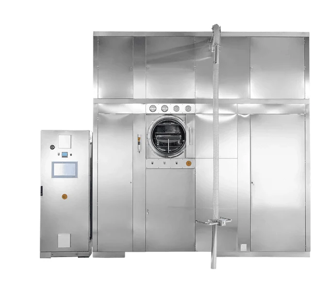 Терминальные стерилизаторы cGMP с системой вращения загрузки Автоклавы TS ROTO специально разработаны для терминальной стерилизации жидкостей на основе липидов (с различной удельной массой), содержащихся в герметичных контейнерах, таких как пластиковые пакеты, стеклянные бутылки, контейнеры BFS, шприцы, флаконы и т. д. Они оснащены автоматической компенсацией давления на основе разницы температур (ΔT), измеряемой терморезистором, вставленным в контейнер для «образца». Это предотвращает деформацию, повреждение или изменение цвета пластиковых контейнеров. Система вращения загрузки предотвращает расслоение или осаждение более тяжелых жидких фаз внутри контейнеров.